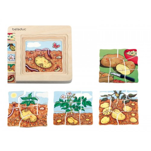 Com este puzzle de camadas os pequenos exploradores vão aprender de forma simples e ilustrativa o crescimento da batata.