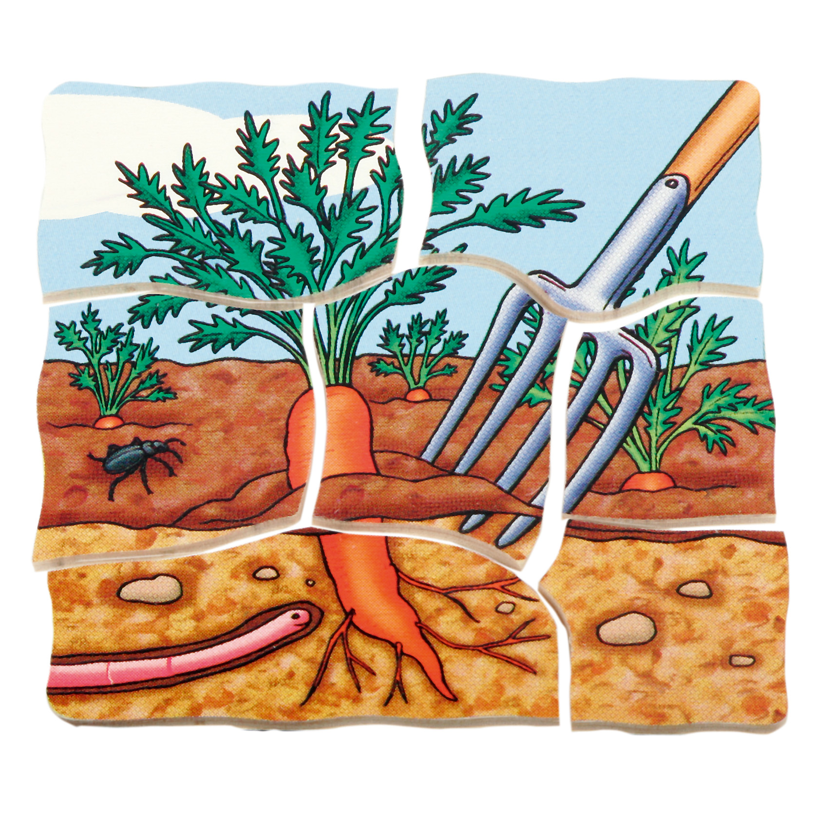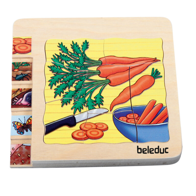 Com este puzzle de camadas os pequenos exploradores vão aprender de forma simples e ilustrativa o crescimento da cenoura.