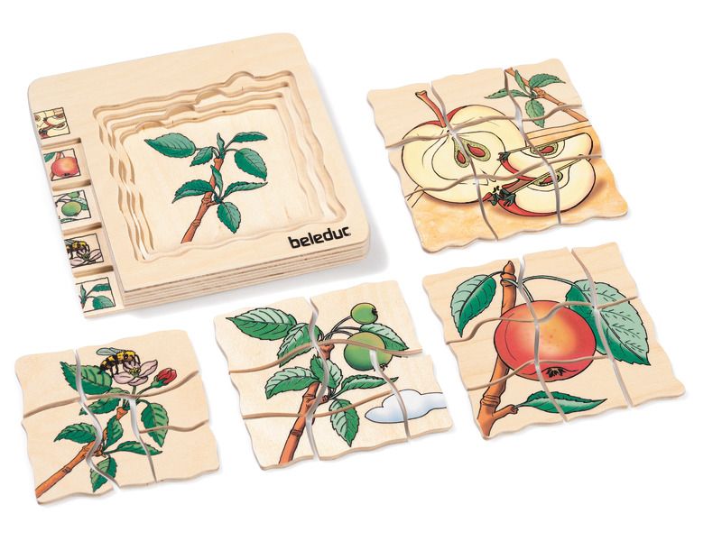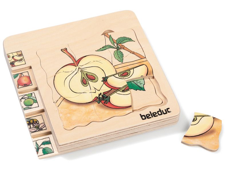 Com este puzzle de camadas os pequenos exploradores vão aprender de forma simples e ilustrativa o crescimento da maçã.