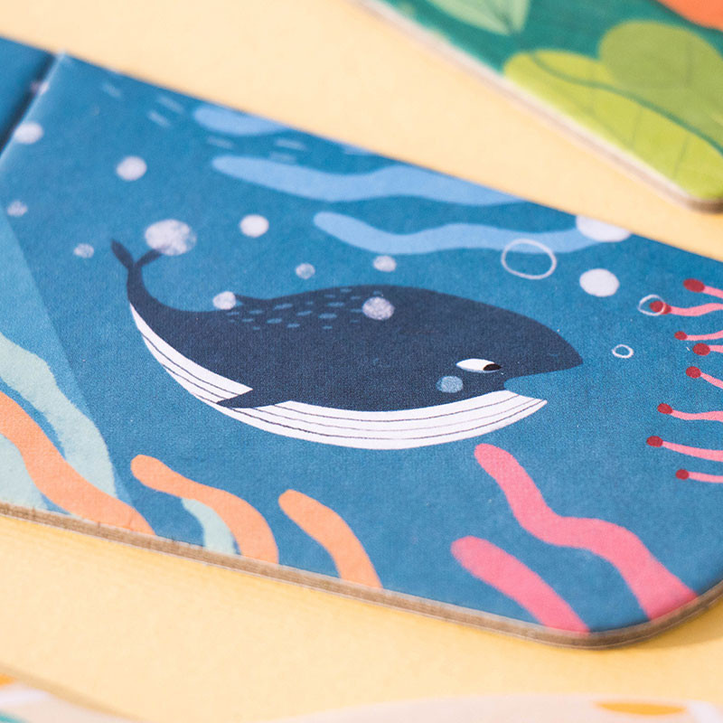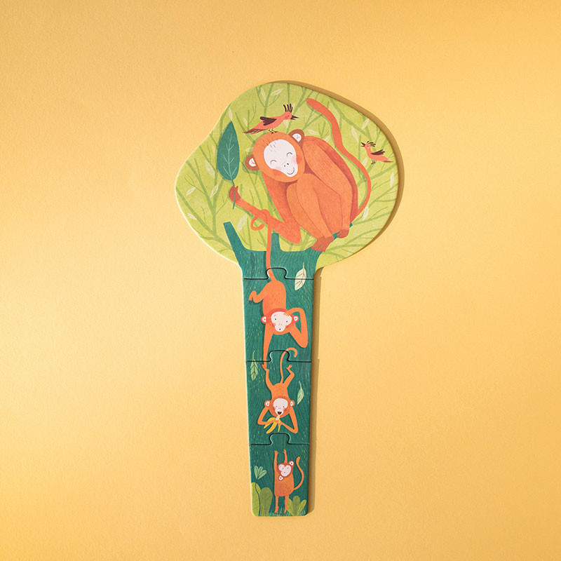 Nesta caixa podem encontrar cinco puzzles, com quatro peças cada, para os pequenos exploradores se divertirem e aprenderem os conceitos de grande e pequeno.