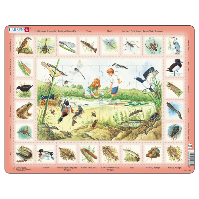 Um puzzle, em cartão resistente da Larsen, com ilustrações muito apelativas de um lago e os seus diferentes elementos. Para momentos de diversão e aprendizagem dos pequenos exploradores.