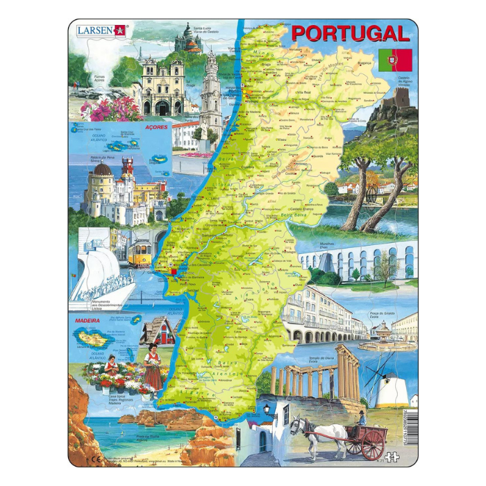 Um puzzle, em cartão resistente da Larsen, com uma ilustração muito apelativa e com informações sobre o nosso país. Para momentos de diversão e aprendizagem dos pequenos exploradores.