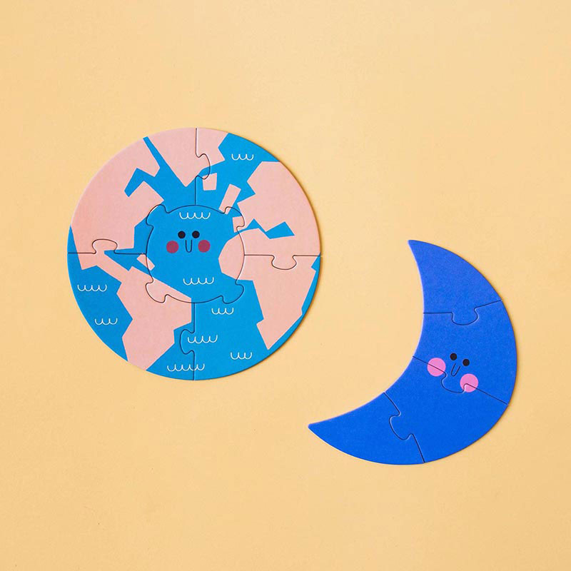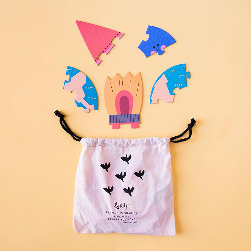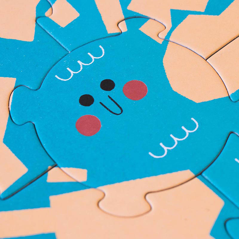 Nesta caixa podem encontrar cinco puzzles progressivos de 2, 3, 4, 5 10 peças. Mas, o que torna este puzzle mais interessante é que as peças são reversíveis... e uma surpresa que brilha no escuro.