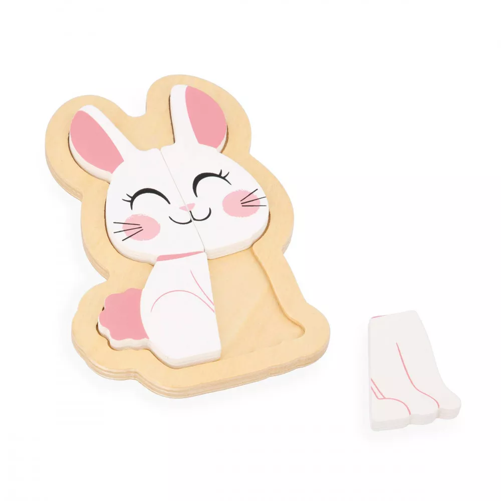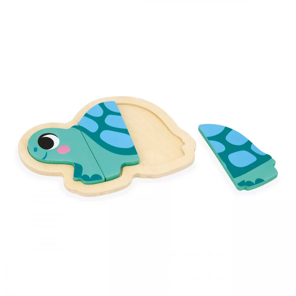 Contém quatro puzzles com o tema jardim, vão encontar um caracol de 2 peças, uma tartaruga de 3 peças, um coelho de 4 peças e uma borboleta de 5 peças. As diferentes peças devem ser colocadas na ordem certa no suporte de madeira, potenciando a concentração e a motricidade fina.