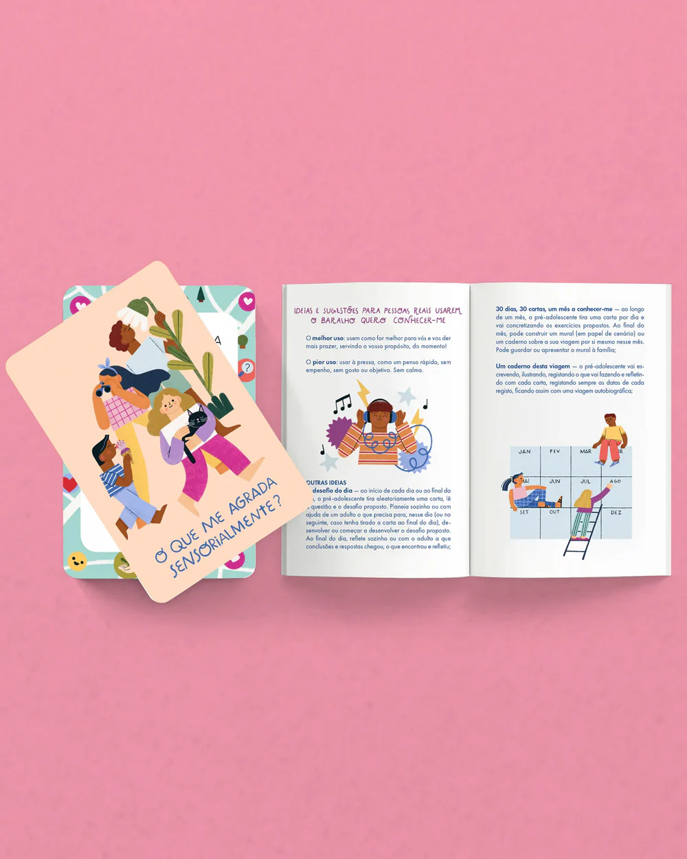 Estas 30 cartas ilustradas com o tema “Quero Conhecer-ME” colocam questões e atividades para que fazeres e descobrires quem és. Vem acompanhado de um livro para te ajudar a explorar estas questões sozinho ou em família.