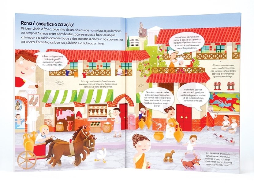 Viaja na História com autocolantes até Roma antiga! Aprende coisas fascinantes acerca dos romanos e do seu império, desde a vida nas cidades até aos sangrentos combates dos gladiadores! De que é que estás à espera? Veste a tua toga e entra neste fabuloso mundo!