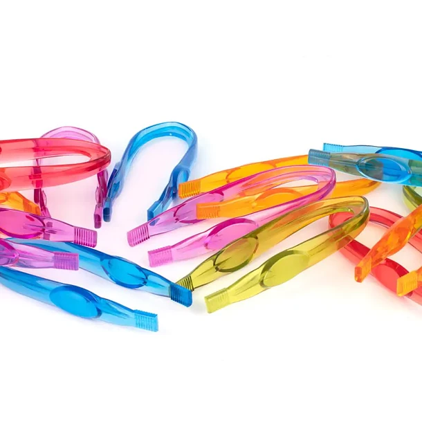 Conjunto de 15 pinças translúcidas, em plástico resistente, ideais para os pequenos exploradores desenvolverem a motricidade fina e a concentração.