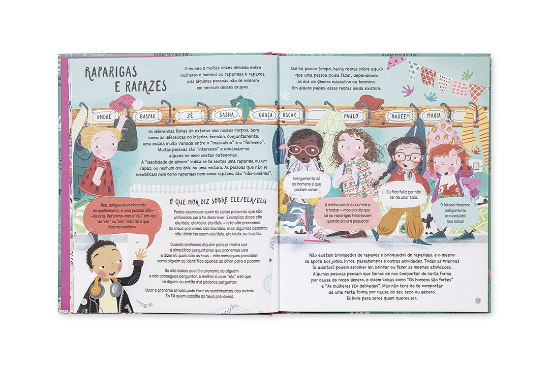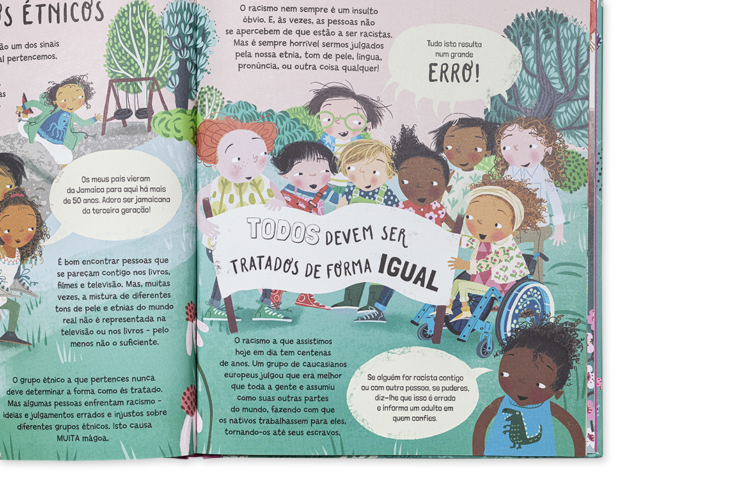 Um livro infantil que aborda diferentes tipos de famílias, dificuldades de aprendizagem, mobilidade reduzida, grupos étnicos, entre outros temas... com uma linguagem clara e direta, adequada a várias idades.