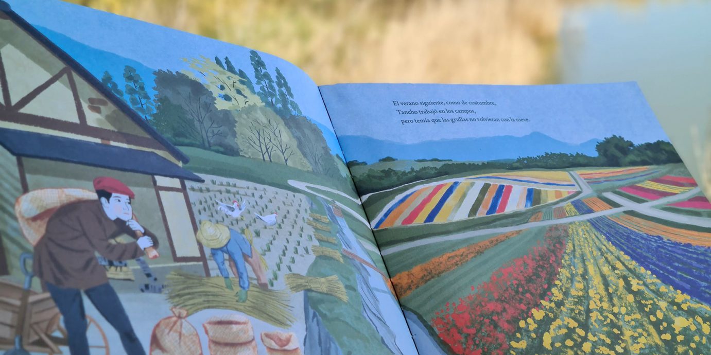 Com as primeiras neves chegavam os grous aos pântanos da ilha de Hokkaido, no Japão. Da sua janela, o Tancho observava a estranha dança daquelas aves. Num inverno, porém, apareceu apenas um casal de grous…