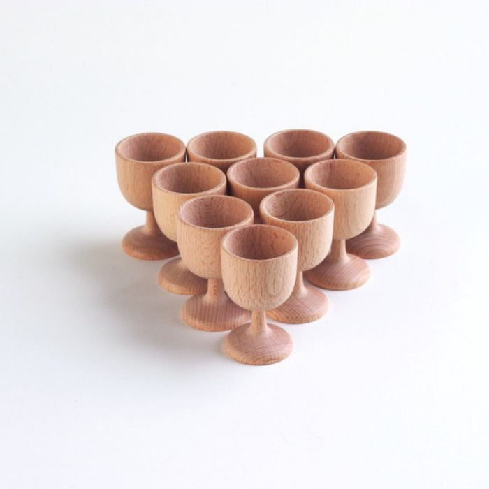A natureza aberta da brincadeira heurística incentiva os mais pequeninos a explorar e investigar à sua maneira, poteciando a criatividade e novas experiências. Este conjunto contém dez copos de ovo de madeira de faia simples e lisos, para muitos momentos de diversão e aprendizagem.