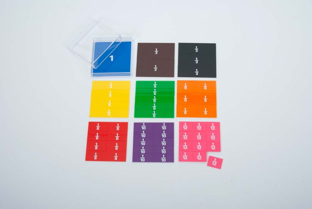 Os pequenos exploradores vão aprender de forma simples e divertida as frações. Este é um conjunto de peças de tamanho proporcional representando um todo, metades, terços, quartos, quintos, sextos, oitavos, décimos e duodécimos em 9 cores distintas com impressão em cada peça.