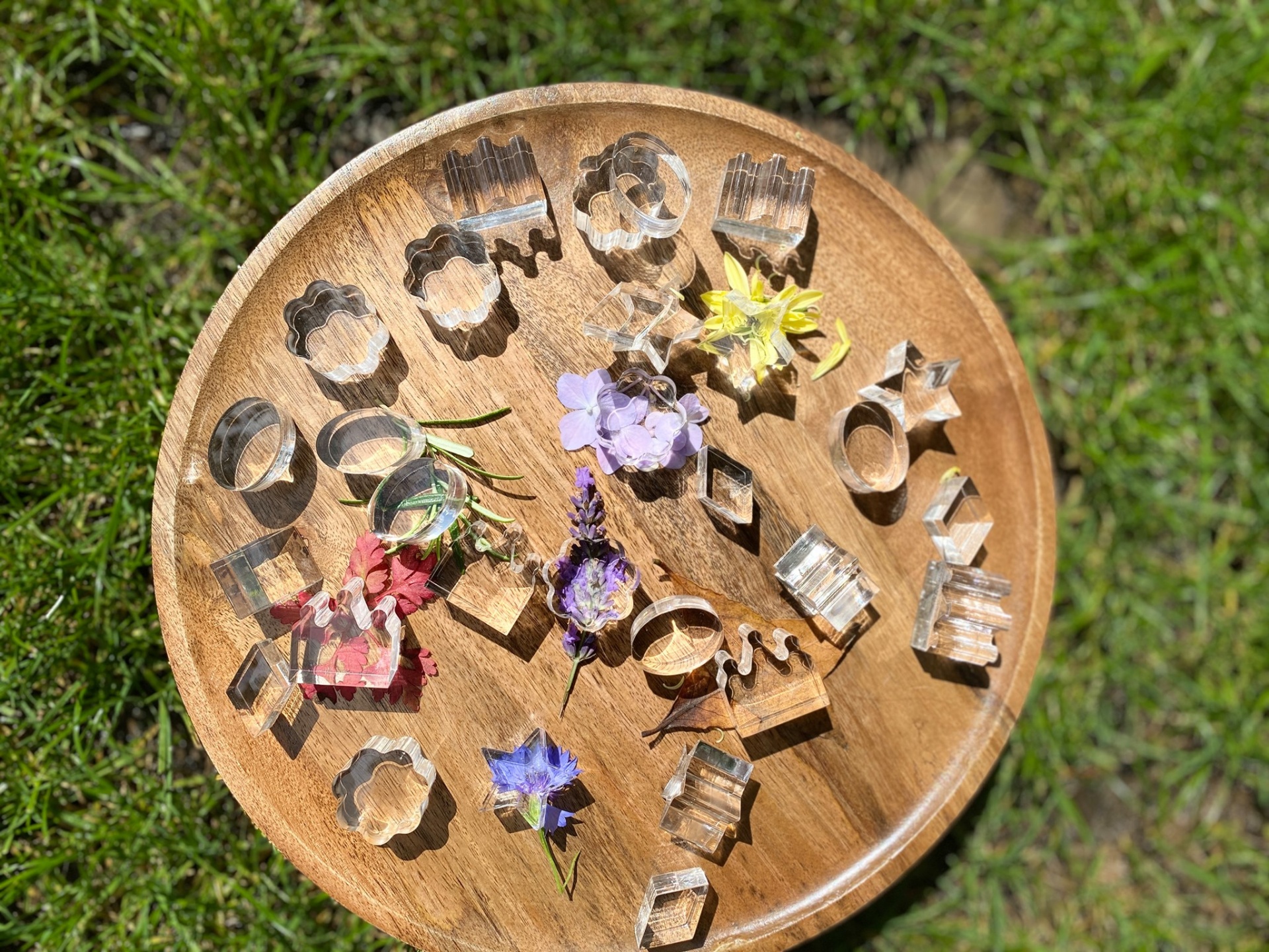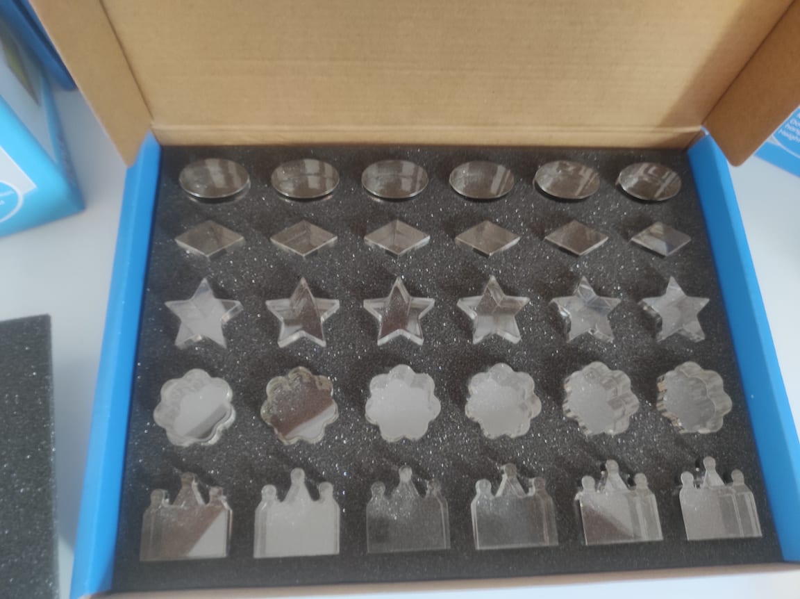 Este conjunto contém 5 formas diferentes de cristal polido, em acrílico transparente com superfícies táteis lisas e brilhantes.