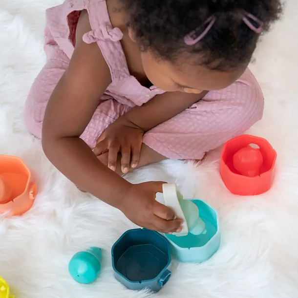 Com os troncos de classificação vão aprender formas e cores, associar as diferentes frutas à cor correspondente, empilhar formando uma única torre ou em forma de favo de mel se quiserem aumentar o grau de dificuldade... este uso de pinça é muito benéfico para a preensão e posteriormente escrita.