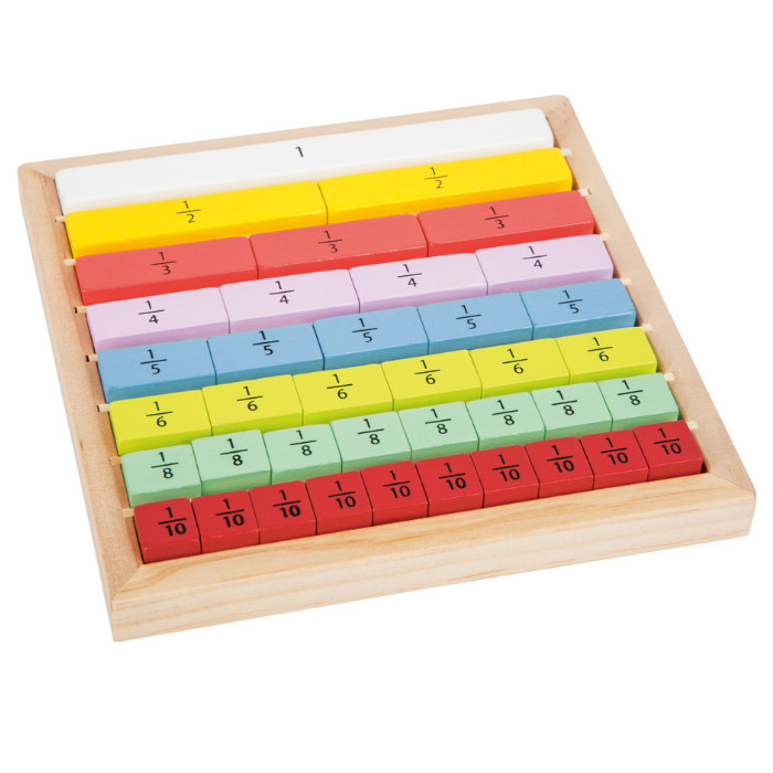 Um jogo, em madeira, ideal para os pequenos exploradores que estão a aprender e a praticar as frações.
