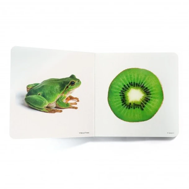 Um livro com fotografias reais que mostram a cor verde na natureza e nos objetos do quotidiano, ajudando os pequenos exploradores a perceber o mundo que os rodeia tal como é. Sem texto, é um convite para potenciar a observação e estimular a imaginação.