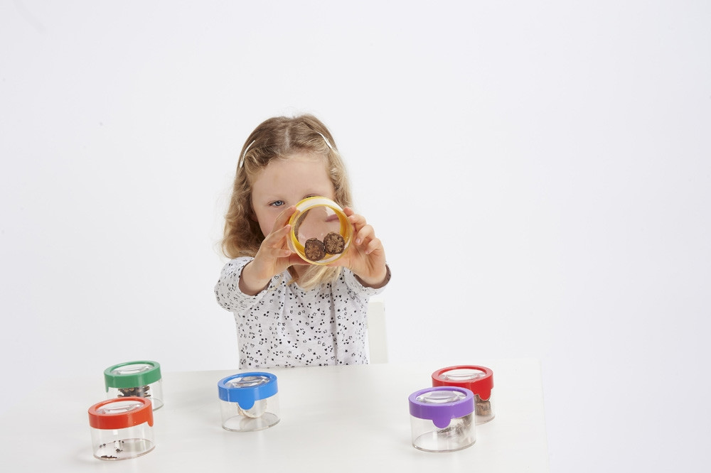 Este é um frasco de observação, em plástico resistente, com uma lupa na tampa. Ideal para explorar os recursos naturais de perto.
