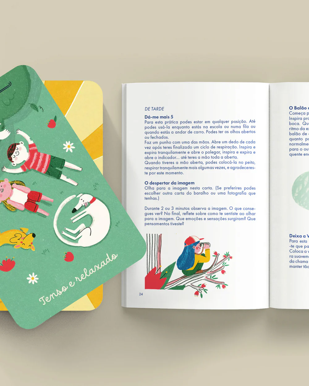Nesta caixa vais encontrar um livro e 32 cartas ilustradas para explorar em família, com práticas simples que te vão inspirar e ajudar a viver todos os dias, de forma mais consciente.