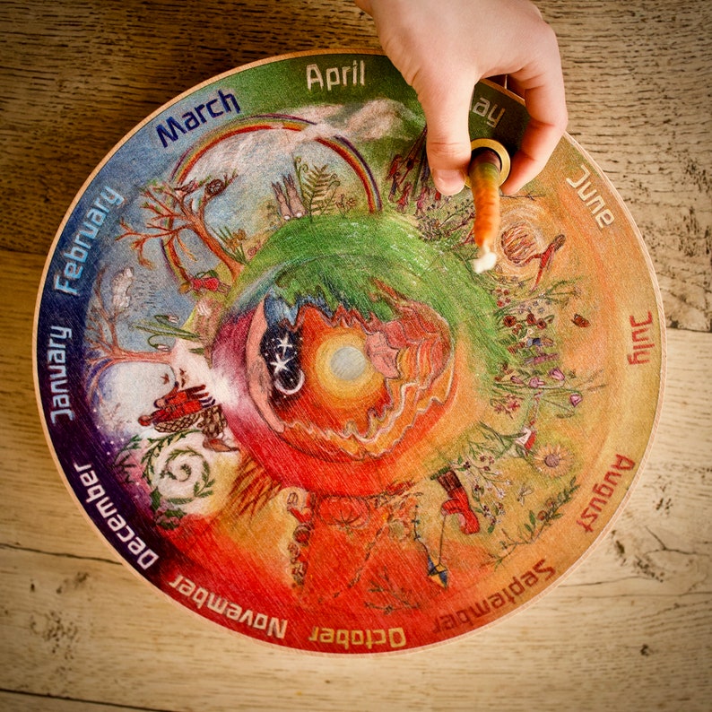 Esta deslumbrante roda, de madeira ilustrada, é uma viagem visual através das diferentes estações do ano.